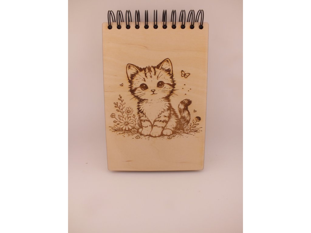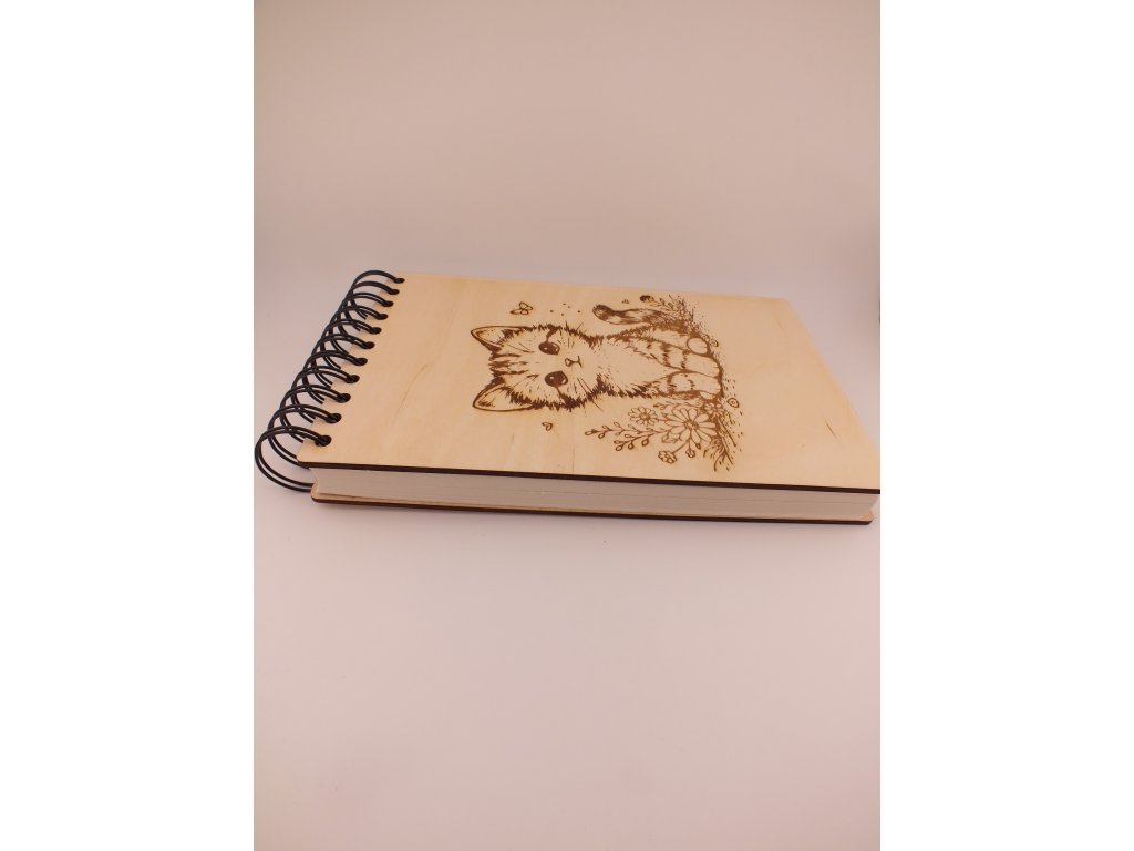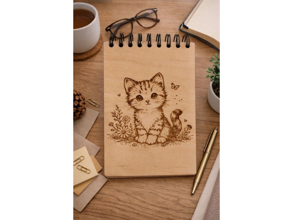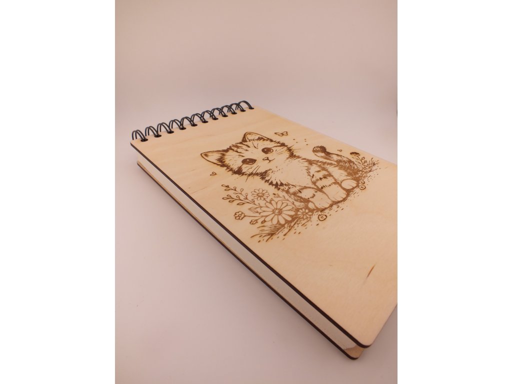Dřevěný zápisník s gravírováním - kočka