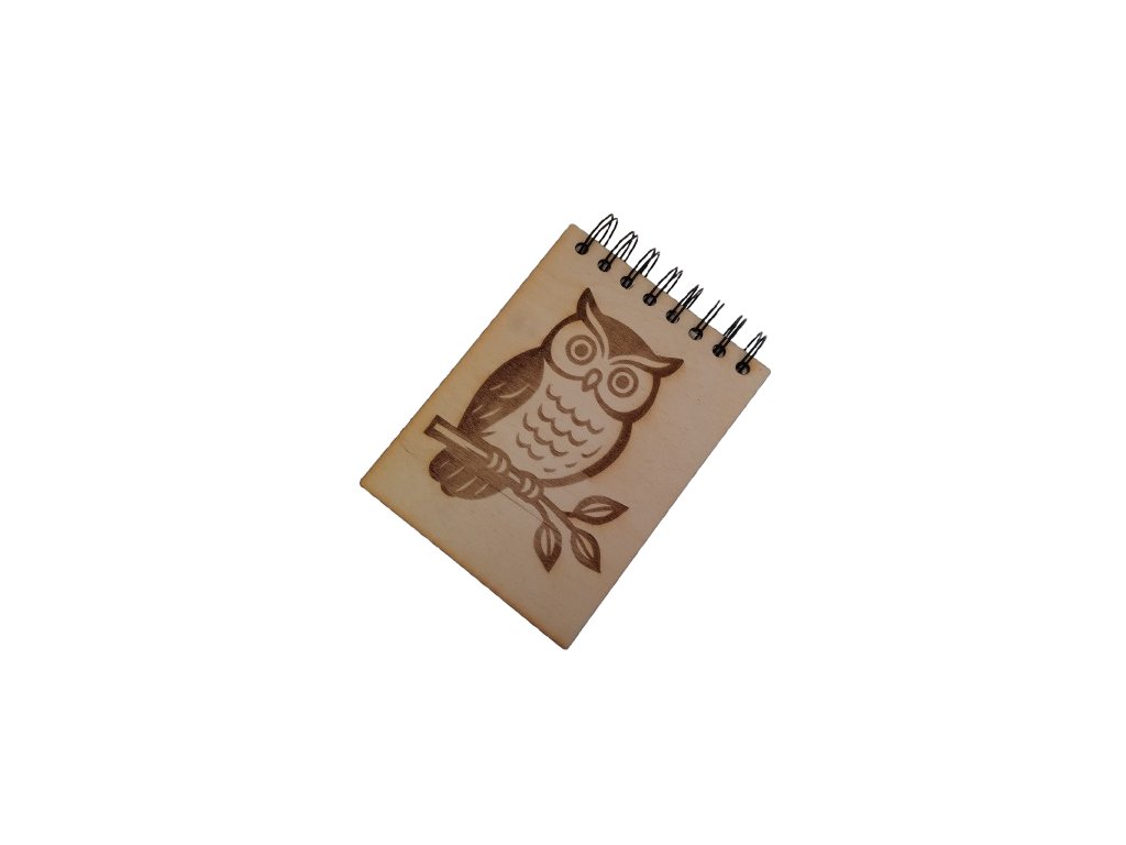 Dřevěný zápisník s gravírováním - sova