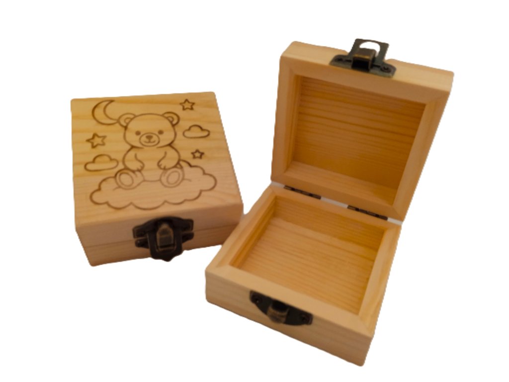 Dřevěná krabička o rozměrech 7 × 7 x 5 cm s jemným přírodním motivem a gravírovaným obrázkem je jako stvořená pro šperky, drobnosti nebo malý dárek. Ať už ji daruješ nebo si ji necháš jen tak pro sebe, zaručeně potěší. Bonus? Možnost doplnit vlastní text a udělat z ní opravdu osobní kousek.