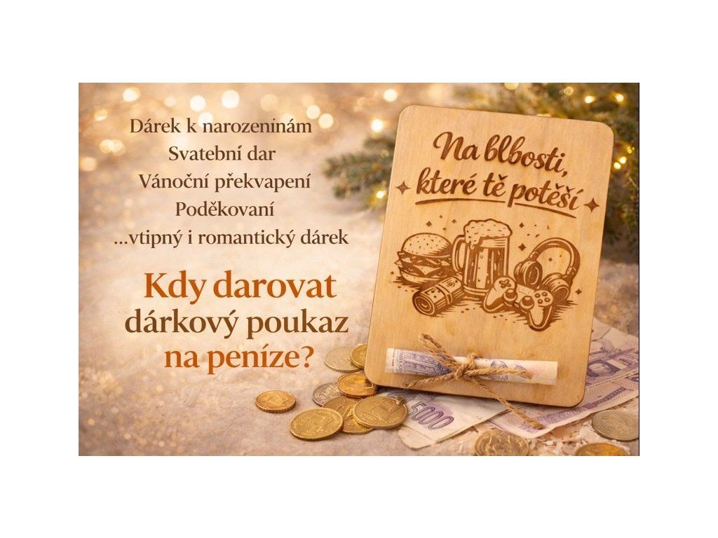 Naše dřevěná poukázka na peníze s gravírováním je stylový a osobní dárek, který zaručeně potěší.