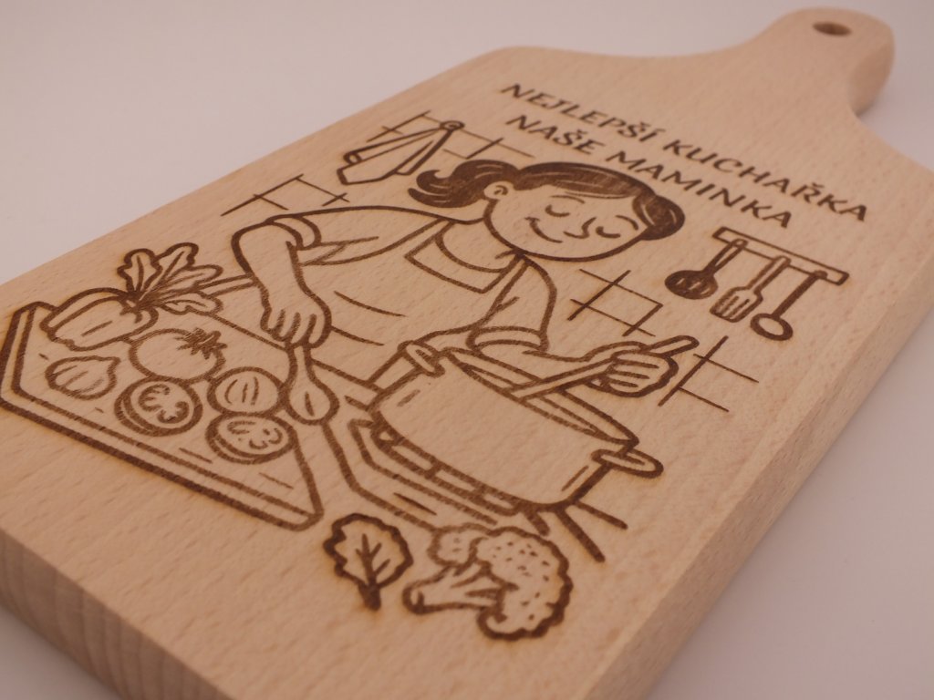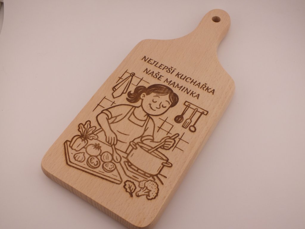 Originální, osobitý a praktický dárek, který potěší každou šikovnou kuchařku i kuchaře! Prkýnko je vyrobeno z kvalitního bukového dřeva a ozdobené gravírovaným textem či obrázkem  Díky tomu se z obyčejného kuchyňského náčiní stává jedinečný kousek s osobním dotekem.
