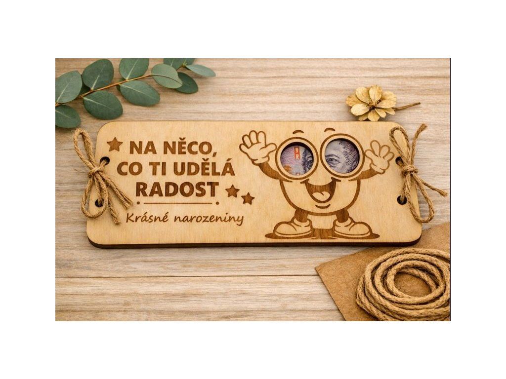 Poznámka: Peníze nejsou součástí balení – posíláme pouze dřevěnou obálku. 😊
