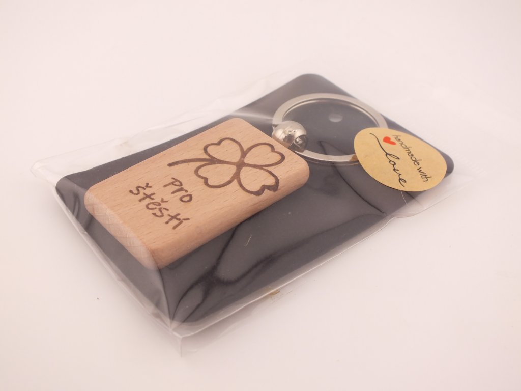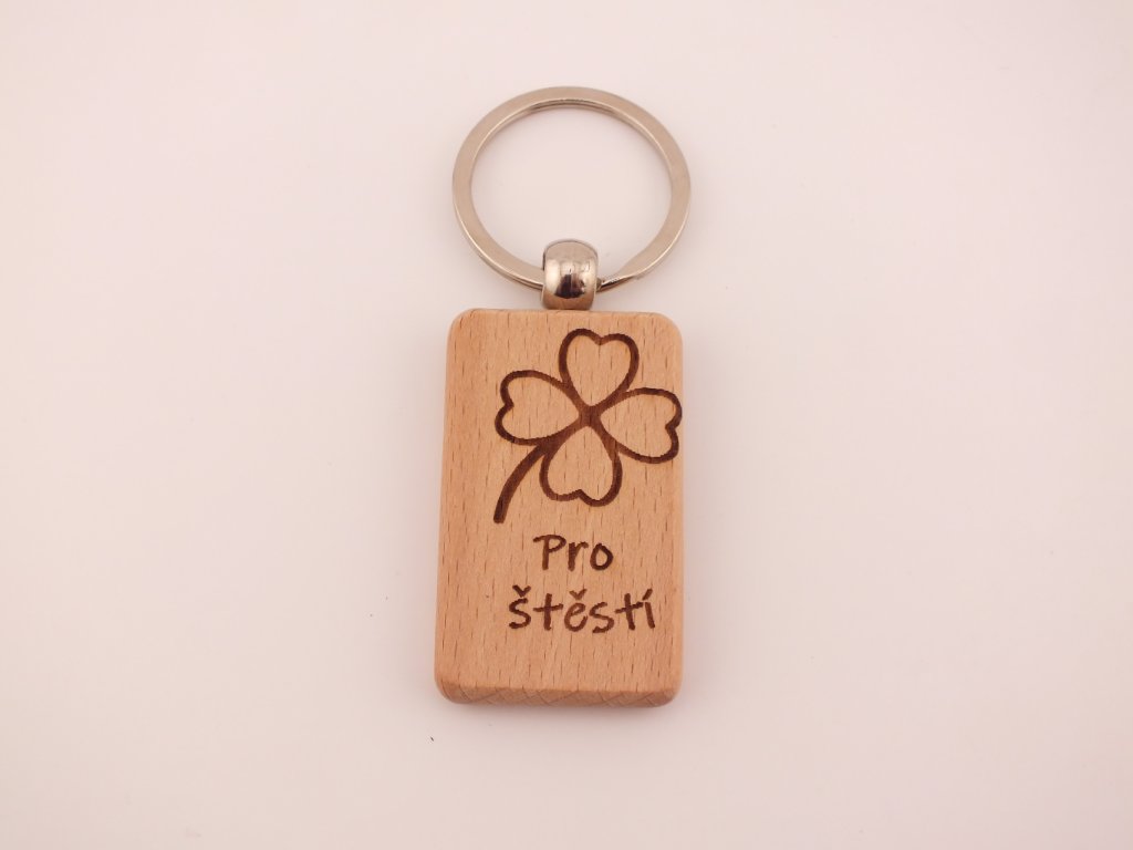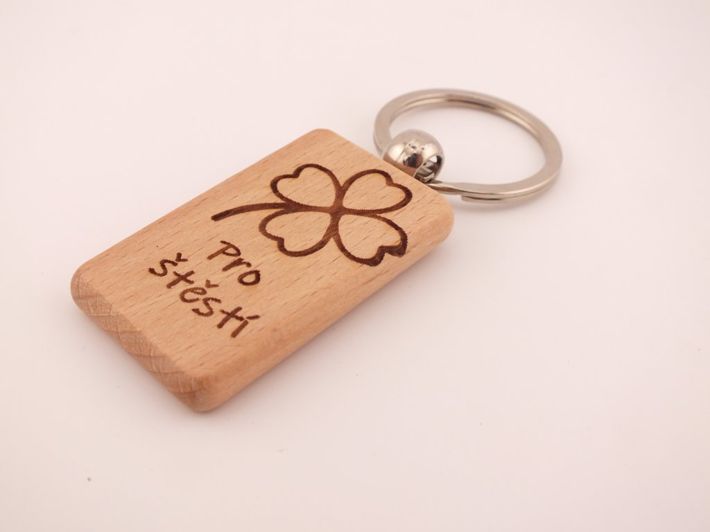 Klíčenka ze dřeva s gravírováním - pro štěstí