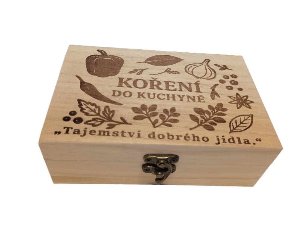 Kouzelná schránka na malé radosti! Tato elegantní dřevěná krabička je ideální pro uložení šperků, drobné kosmetiky, čaje, čokolády, bonbonů, koření nebo jiných maličkostí, které potěší. Skvěle poslouží i jako úložný box na památeční předměty nebo osobní poklady.