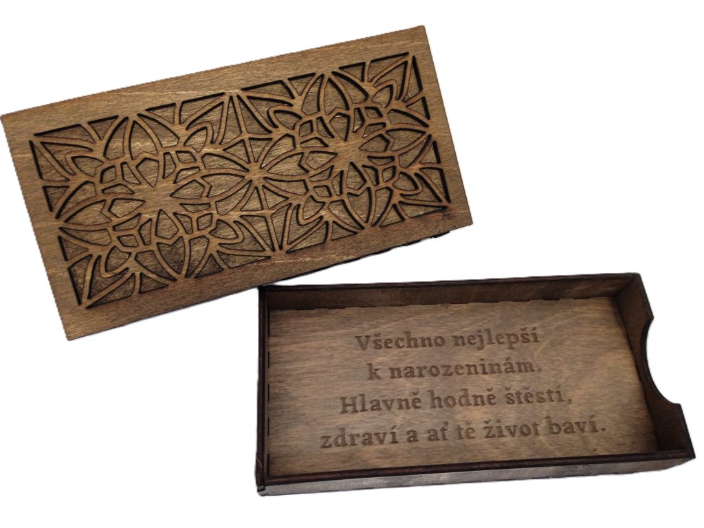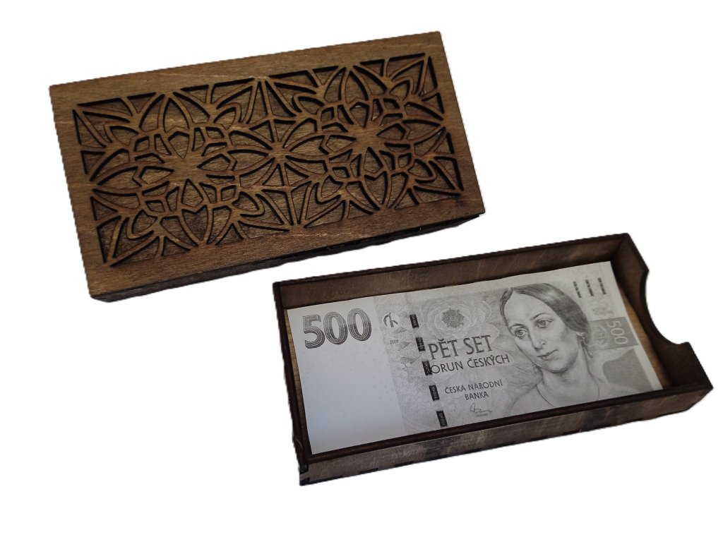 Dřevěná krabička na penízeElegantní a praktická dřevěná krabička, ideální pro originální darování peněz. Po darování nezůstane bez využití – poslouží jako stylová schránka na...