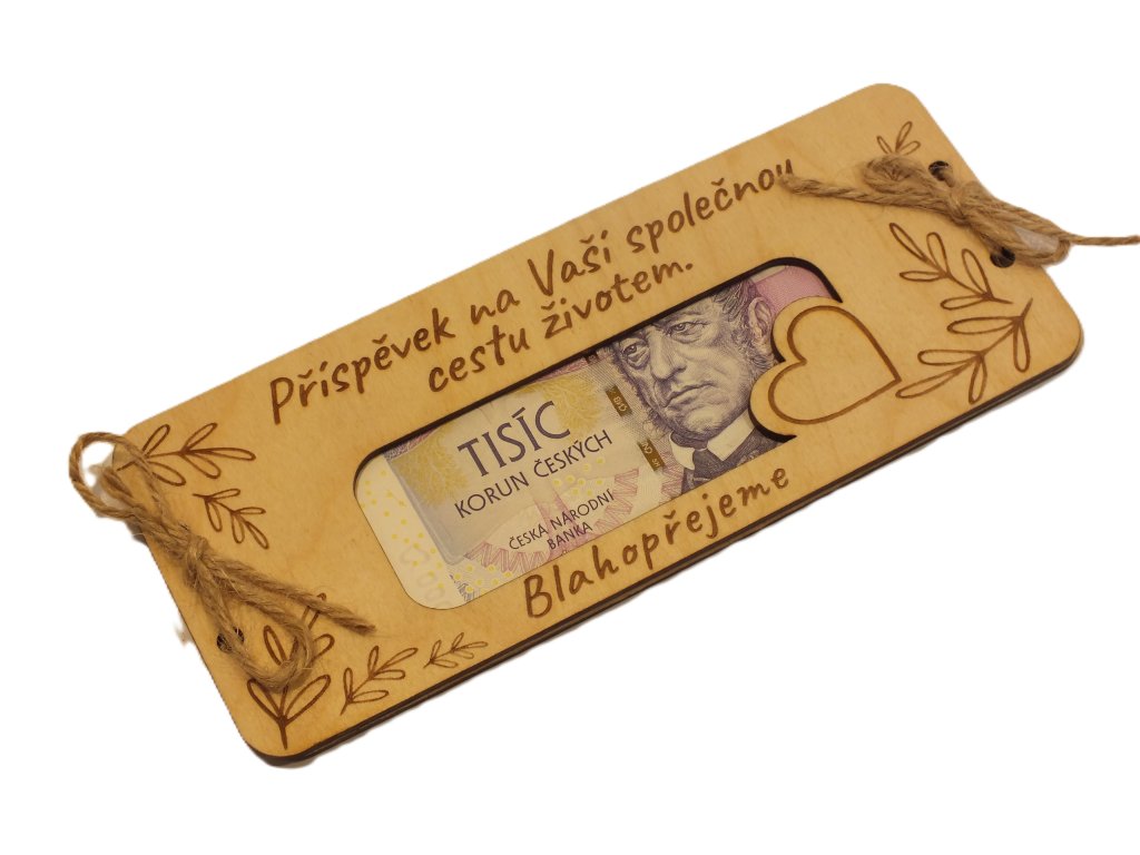 Poznámka: Peníze nejsou součástí balení – posíláme pouze dřevěnou obálku. 😊