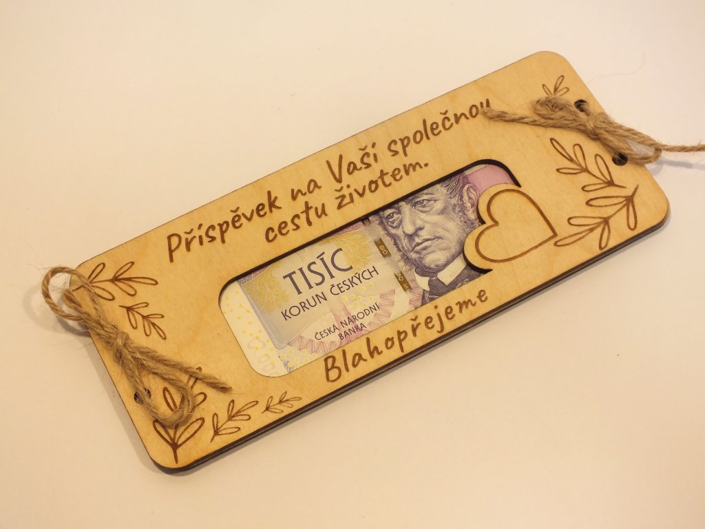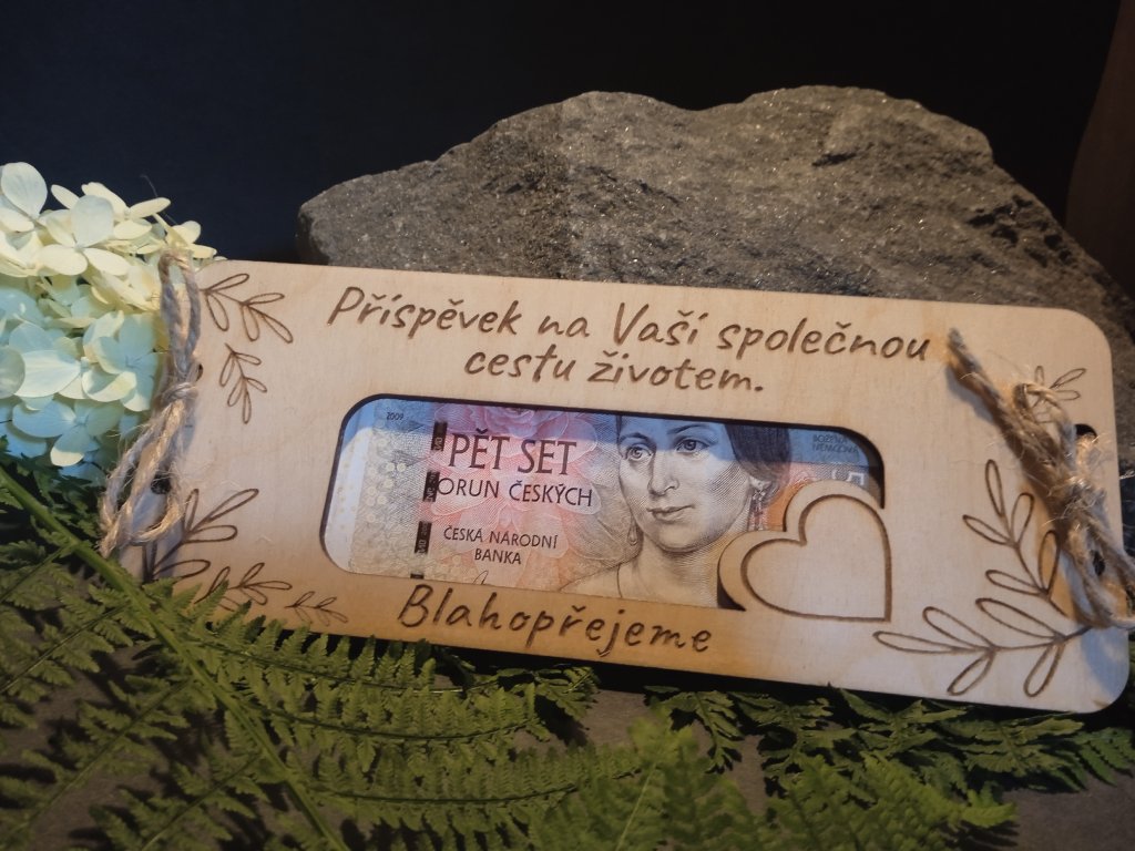 Poznámka: Peníze nejsou součástí balení – posíláme pouze dřevěnou obálku. 😊