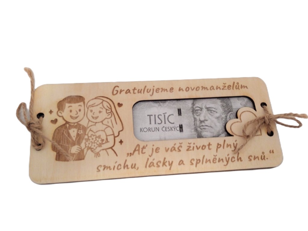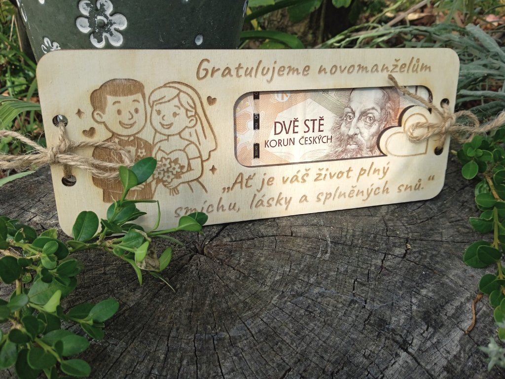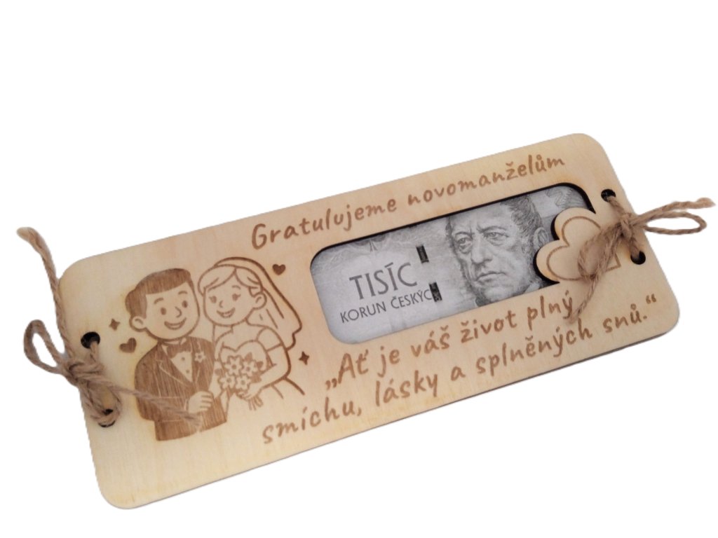 Poznámka: Peníze nejsou součástí balení – posíláme pouze dřevěnou obálku. 😊