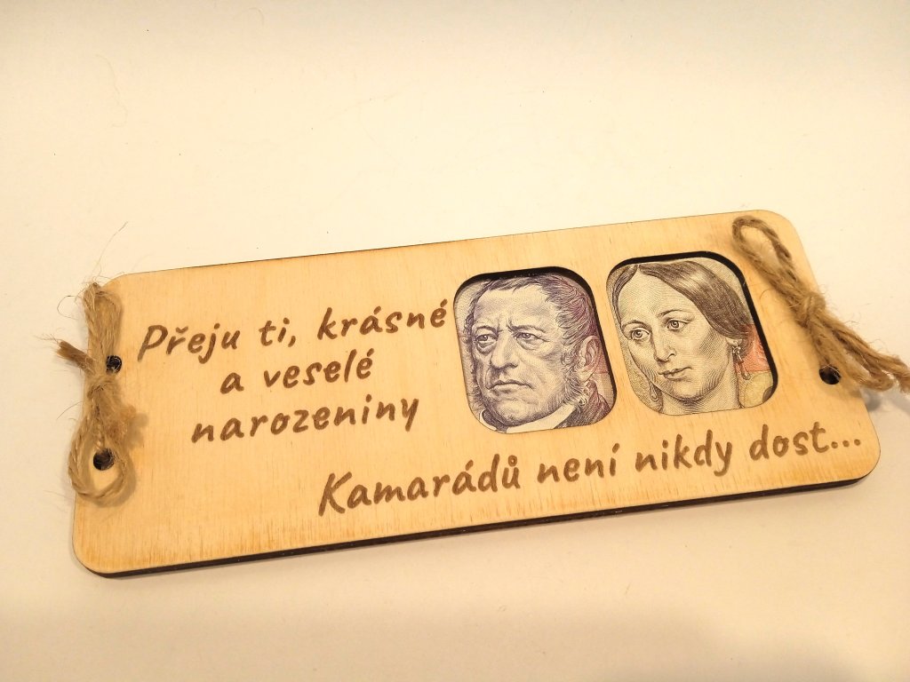 Poznámka: Peníze nejsou součástí balení – posíláme pouze dřevěnou obálku. 😊