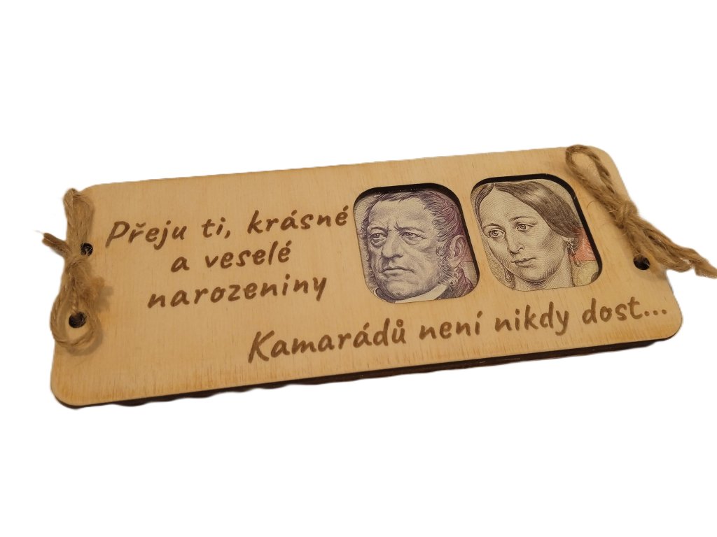Poznámka: Peníze nejsou součástí balení – posíláme pouze dřevěnou obálku. 😊