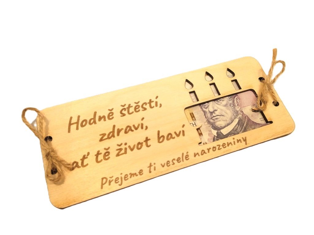 Poznámka: Peníze nejsou součástí balení – posíláme pouze dřevěnou obálku. 😊