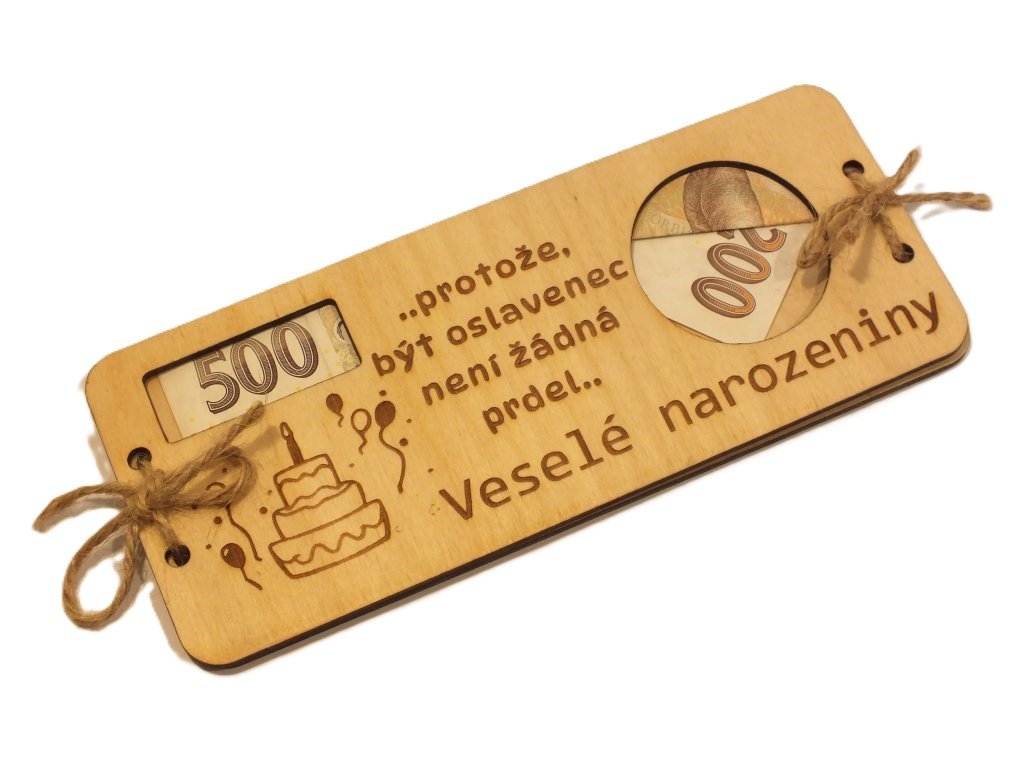 Poznámka: Peníze nejsou součástí balení – posíláme pouze dřevěnou obálku. 😊