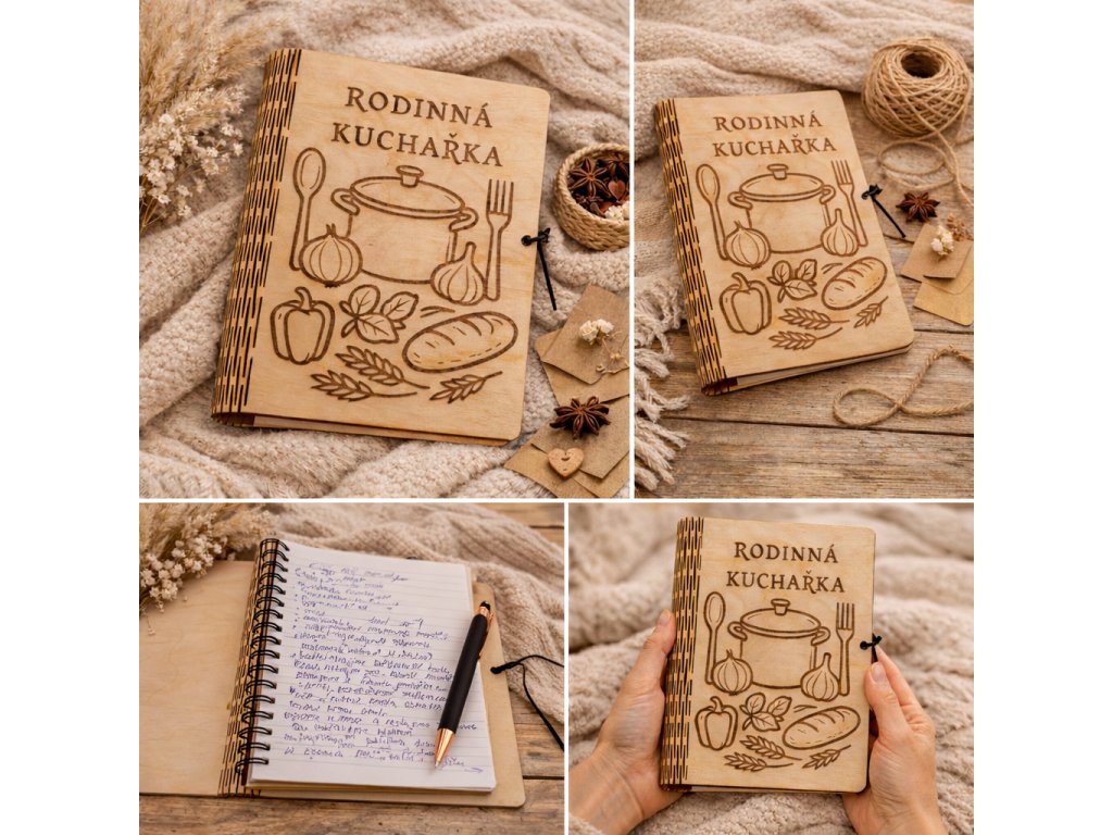 Ohebný dřevěný deník z jednoho kusu dřeva – rodinná kuchařka