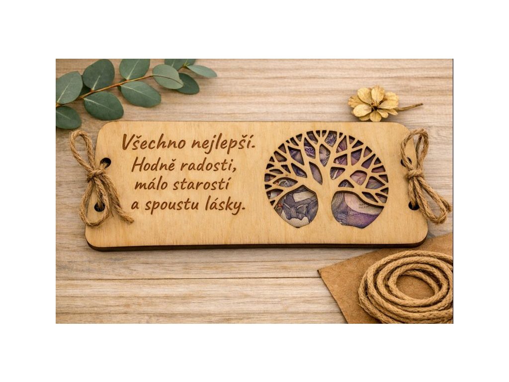 Poznámka: Peníze nejsou součástí balení – posíláme pouze dřevěnou obálku. 😊