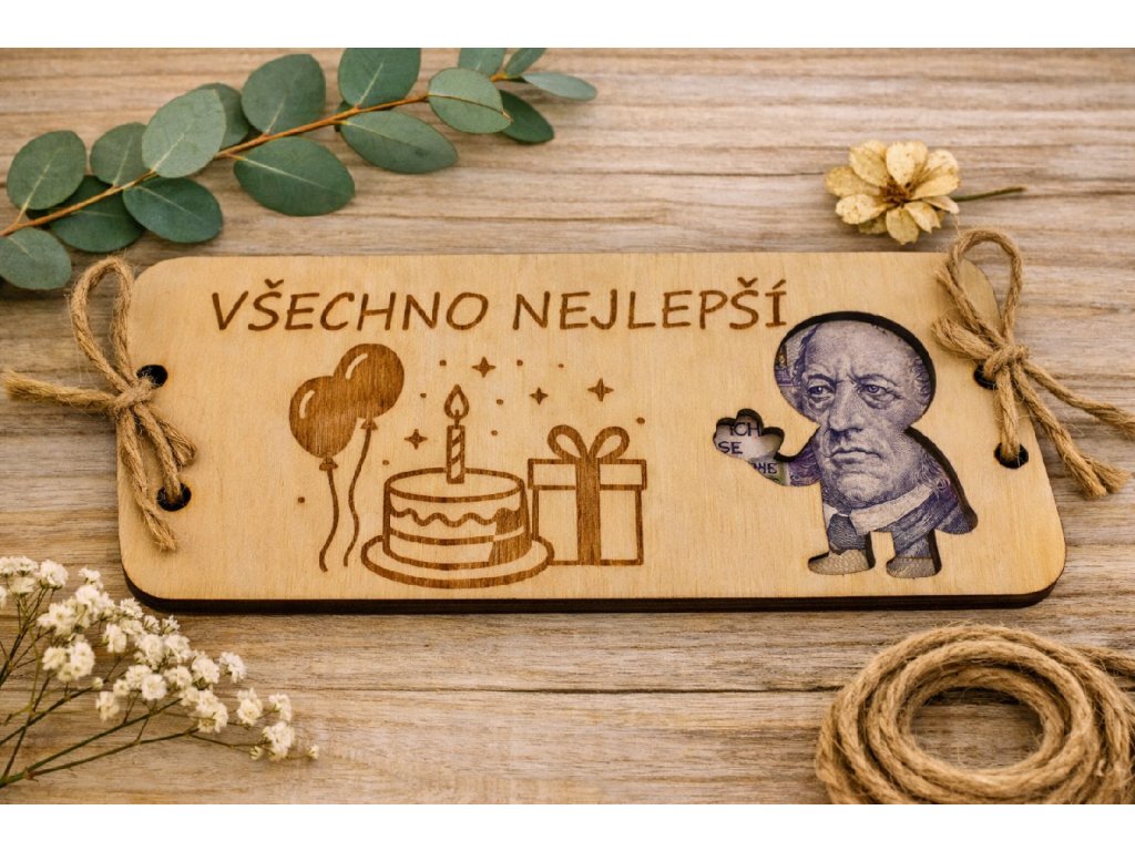 Poznámka: Peníze nejsou součástí balení – posíláme pouze dřevěnou obálku. 😊