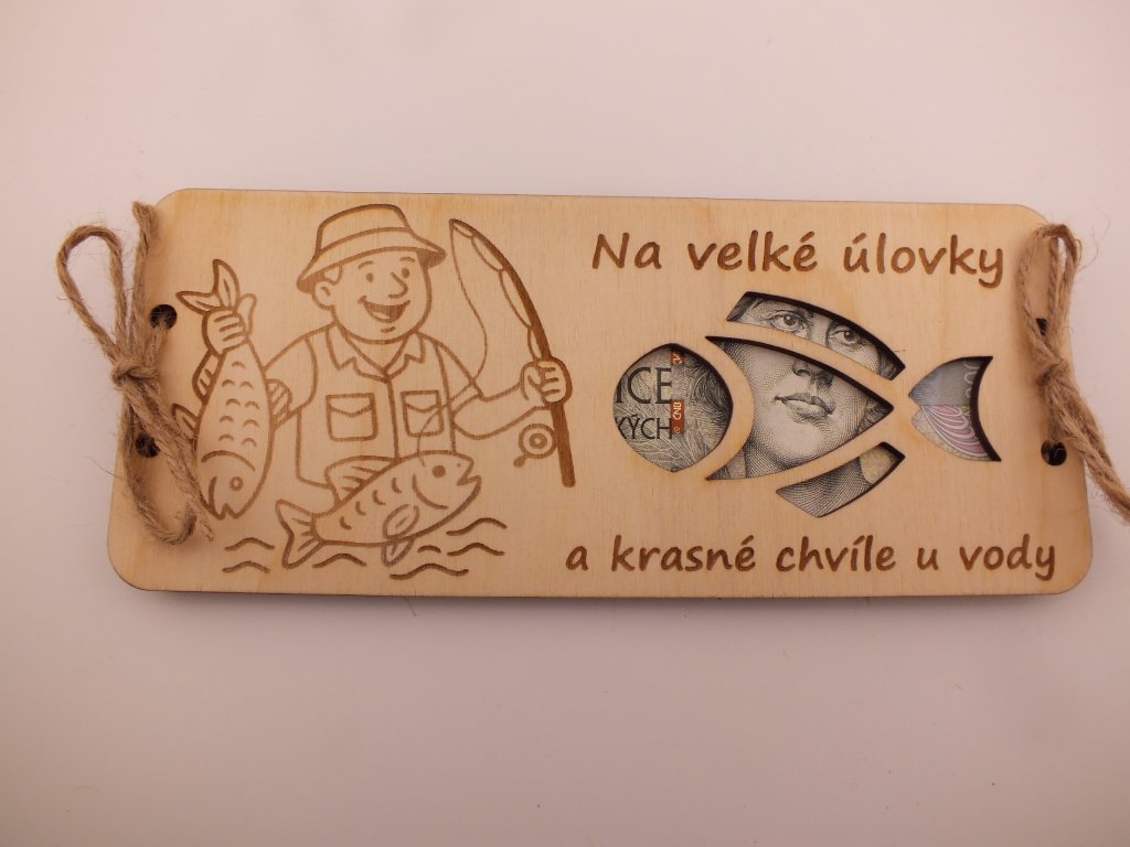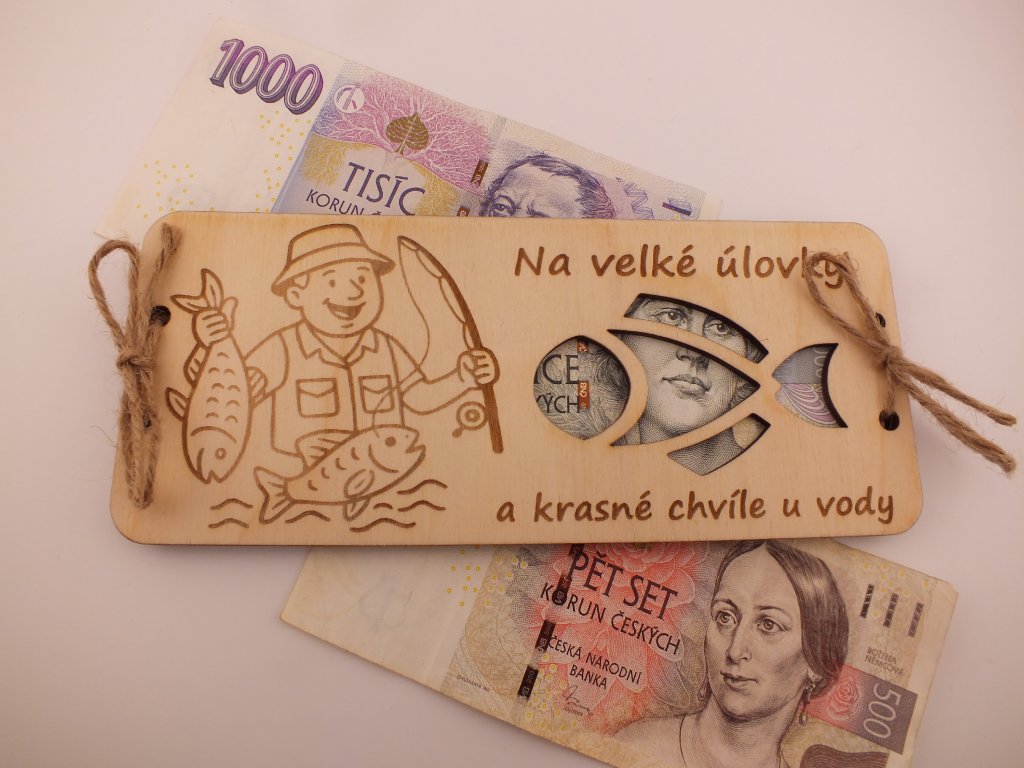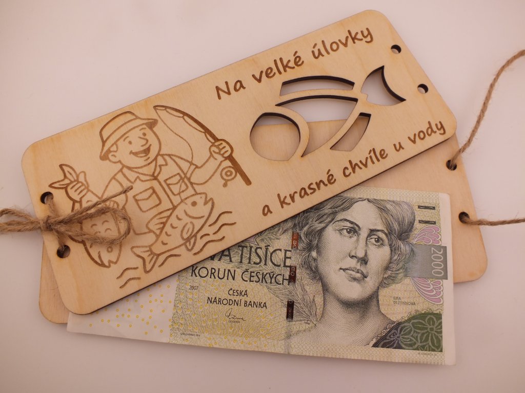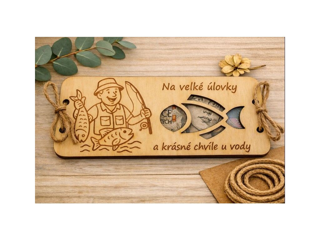 Personalizovaná dřevěná obálka na peníze - pro rybáře