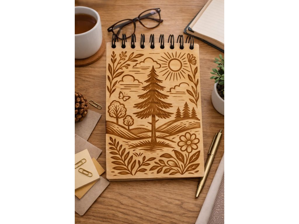 Personalizovaný dřevěný deník – přírodní motiv