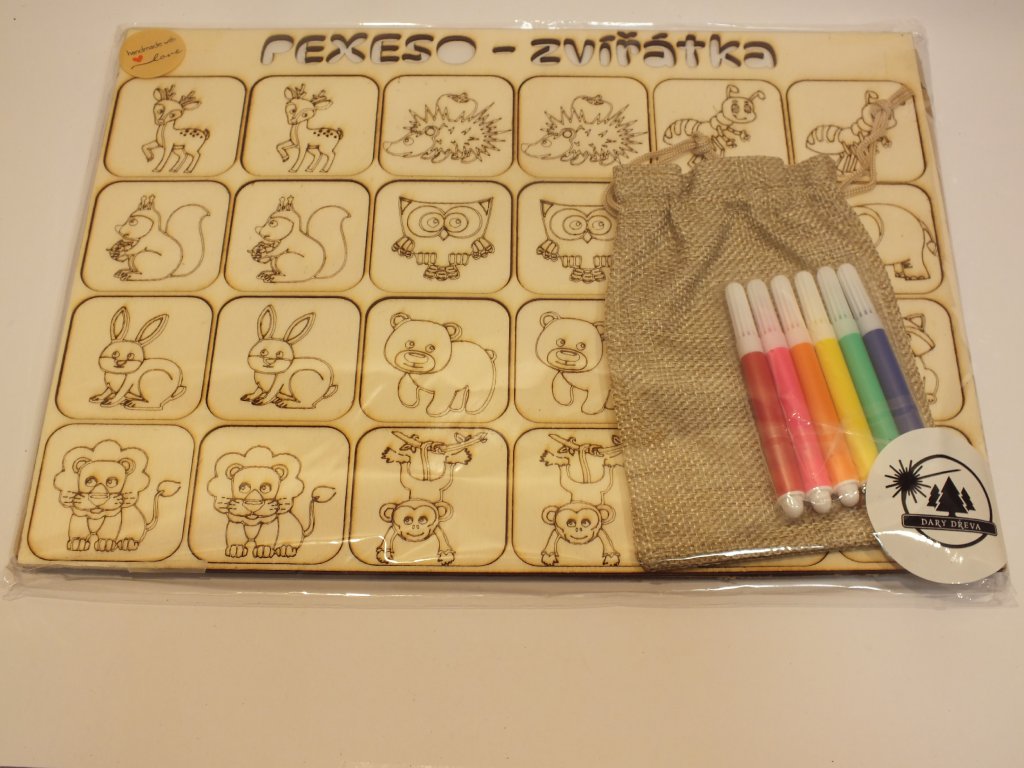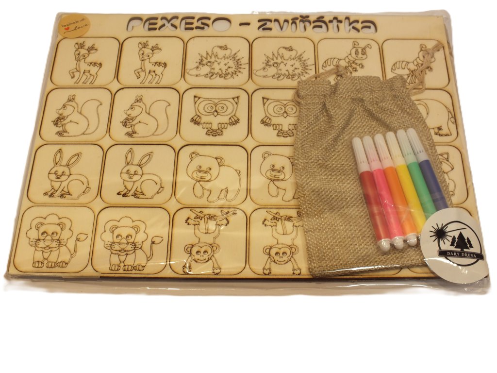 Pexeso je z březové překližky o síle 3 mm, takže něco vydrží – a navíc si ho děti mohou vymalovat podle své fantazie! 🎨