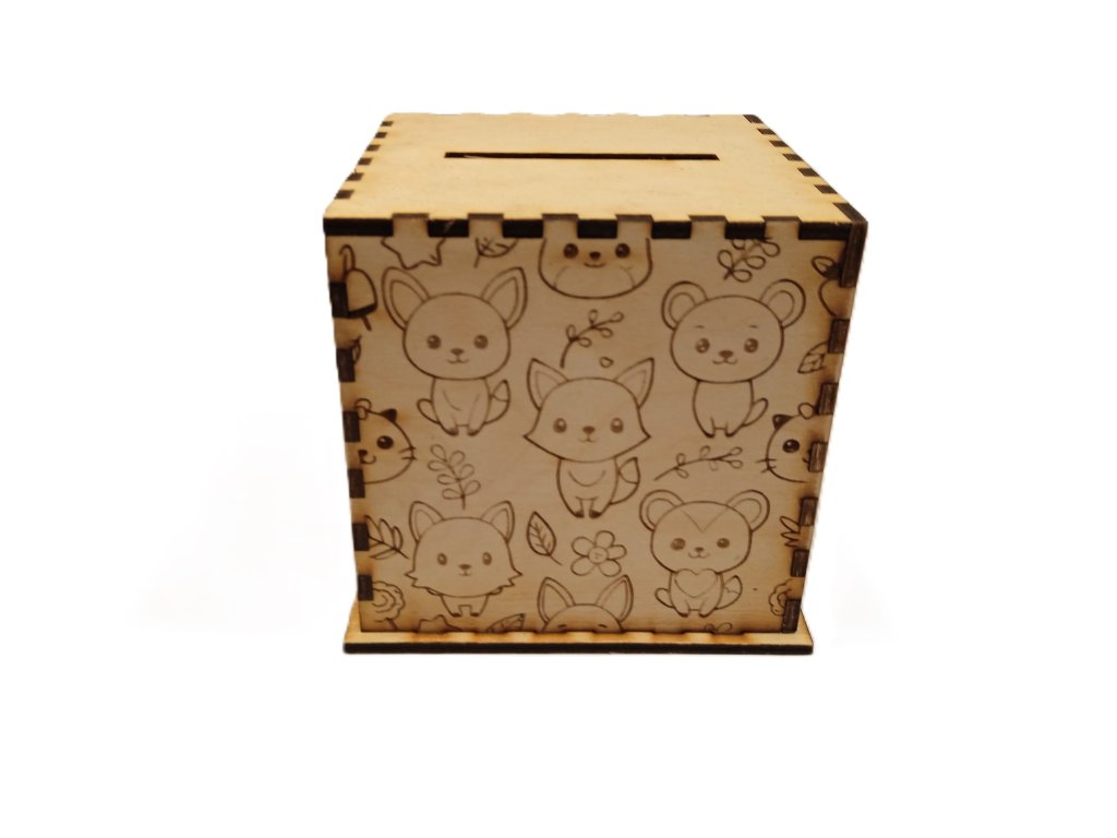 Krásná a praktická pokladnička vyrobená z kvalitní březové překližky o síle 3 mm. Rozměry 10×10×10 cm z ní dělají ideální úschovu pro dětské poklady, drobné mince i papírové peníze.