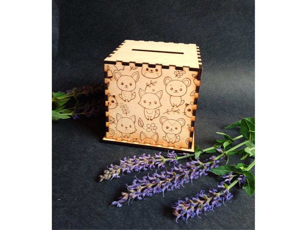 Krásná a praktická pokladnička vyrobená z kvalitní březové překližky o síle 3 mm. Rozměry 10×10×10 cm z ní dělají ideální úschovu pro dětské poklady, drobné mince i papírové peníze.