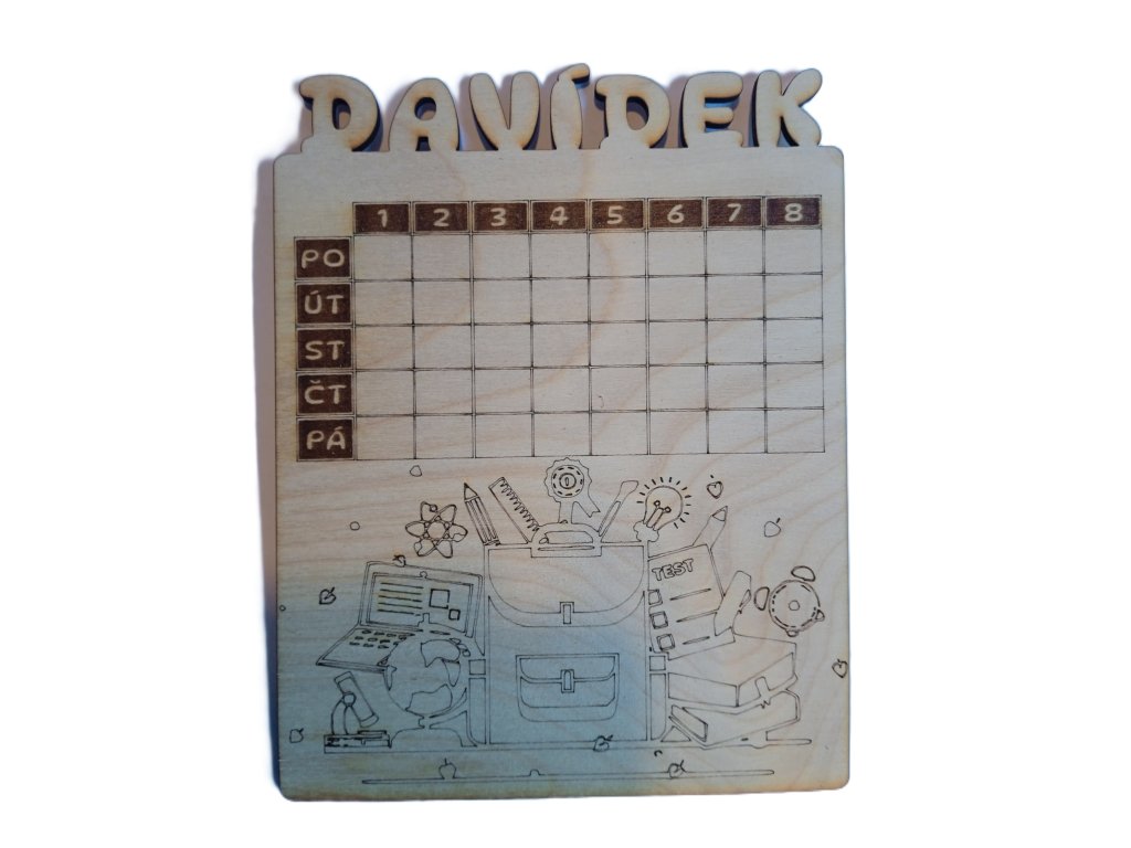 Dřevěný rozvrh hodin pro školáky – březová překližka 20×14 cm