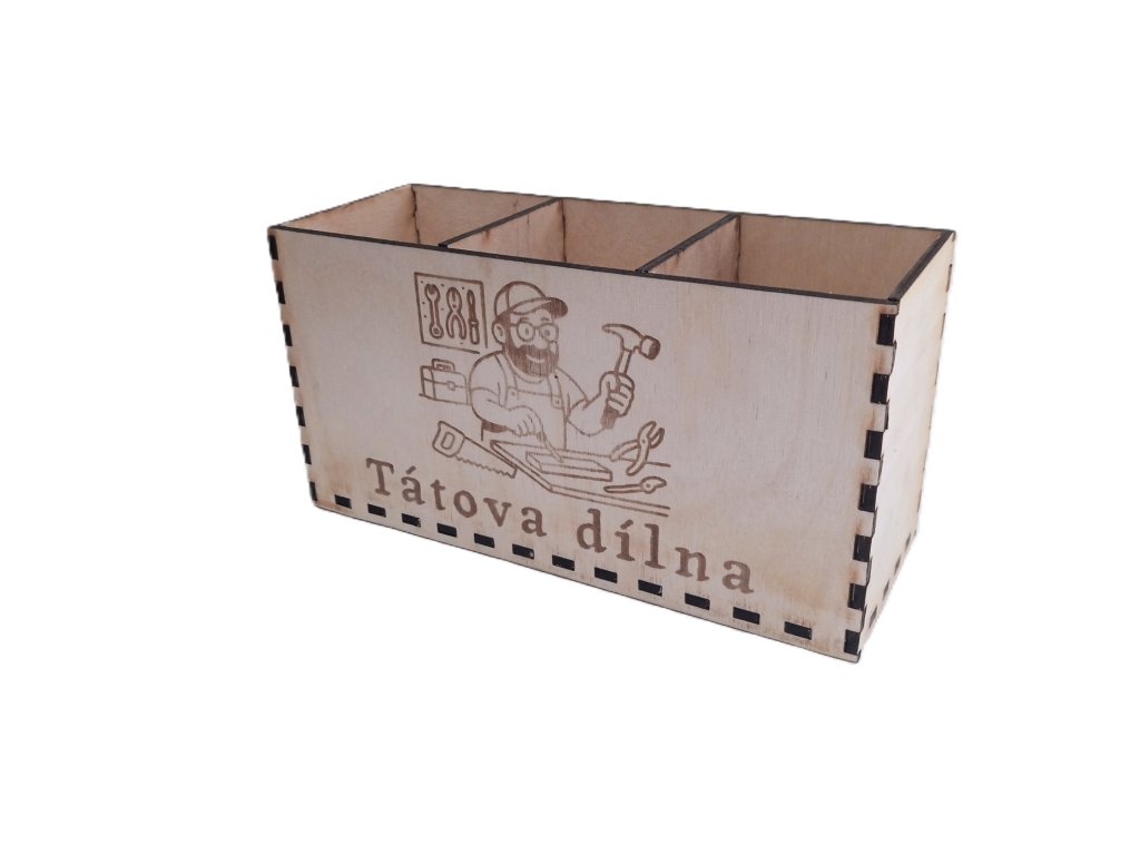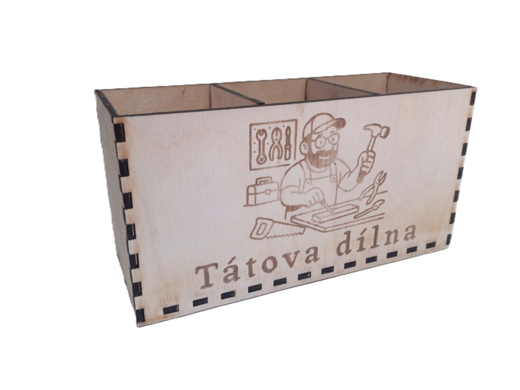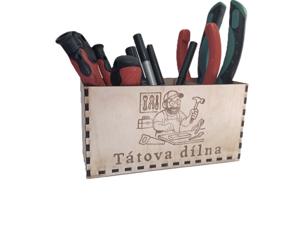 Praktický a originální dřevěný stojánek na nářadí potěší každého kutila, ať už je to tatínek, dědeček nebo manžel. Stojánek je vyroben z kvalitní březové překližky o velikosti 18 × 9,5 × 7 cm a díky veselému gravírování vnese do každé dílny i garáže nejen pořádek, ale i úsměv.