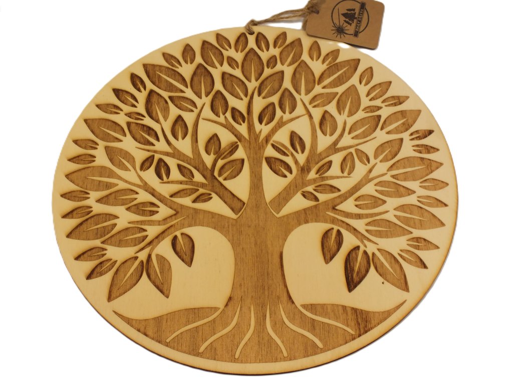 Krásná dřevěná dekorace o průměru 29 × 29 cm, vhodná k zavěšení na stěnu. Jemně gravírované přírodní motivy vyniknou v jakémkoli interiéru a přinesou do domova klid a harmonii.