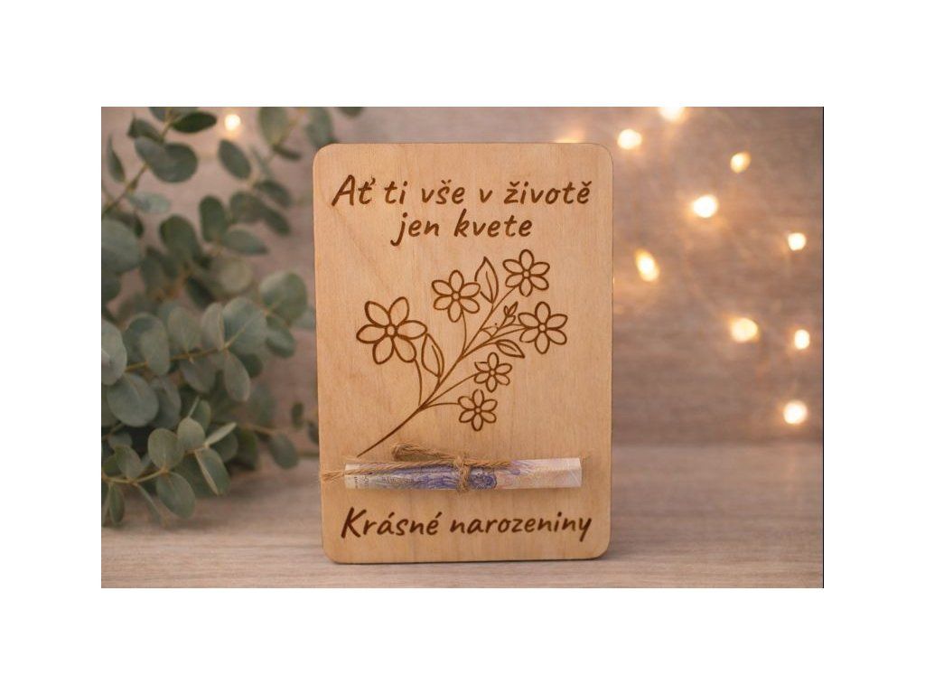 Stylová dřevěná karta na bankovky