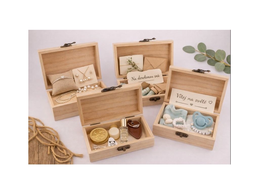Dřevěná krabička dodá vašemu dárku exkluzivní vzhled a promění obyčejné předání v nezapomenutelný okamžik.