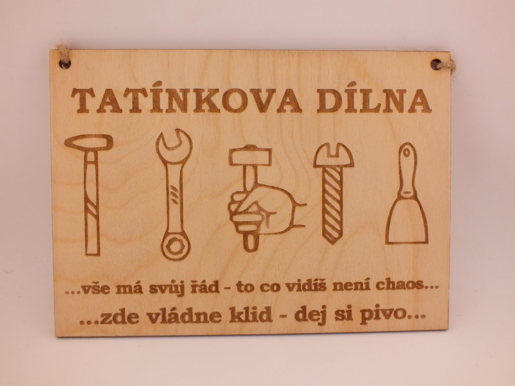 Tatínkova dílna – dřevěná cedulka s humorem