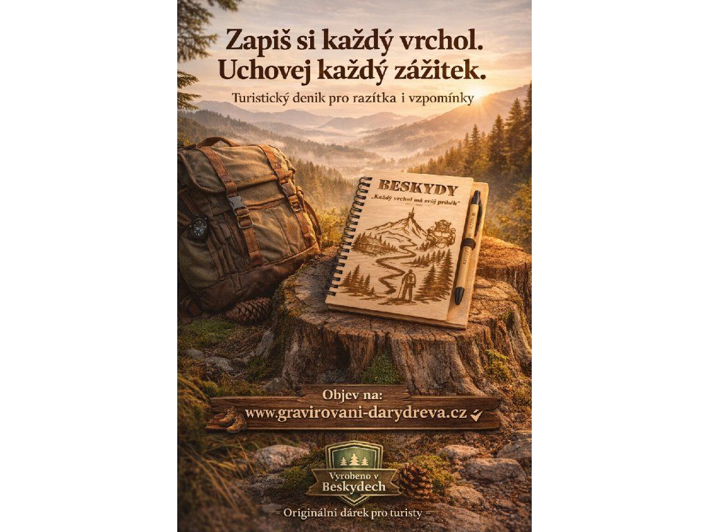 Díky pevné dřevěné obálce s gravírovaným motivem Beskyd se deník stává nejen praktickým společníkem na cesty, ale i krásnou vzpomínkou na chvíle v přírodě.