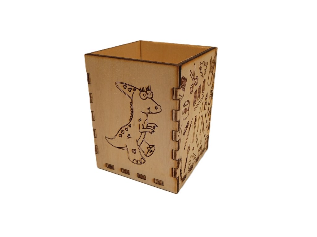 Originální dřevěný tužkovník vyrobený z kvalitní březové překližky o síle 3 mm. Ideální na pastelky, fixy nebo psací potřeby. Rozměry 7×7×9 cm zaručují dostatek prostoru, aniž by zabíral mnoho místa na stole.