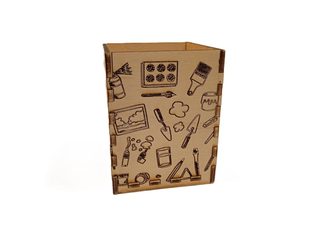 Tužkovník z březové překližky – 7×7×9 cm Originální dřevěný tužkovník vyrobený z kvalitní březové překližky o síle 3 mm. Ideální na pastelky, fixy nebo psací potřeby. Rozměry...