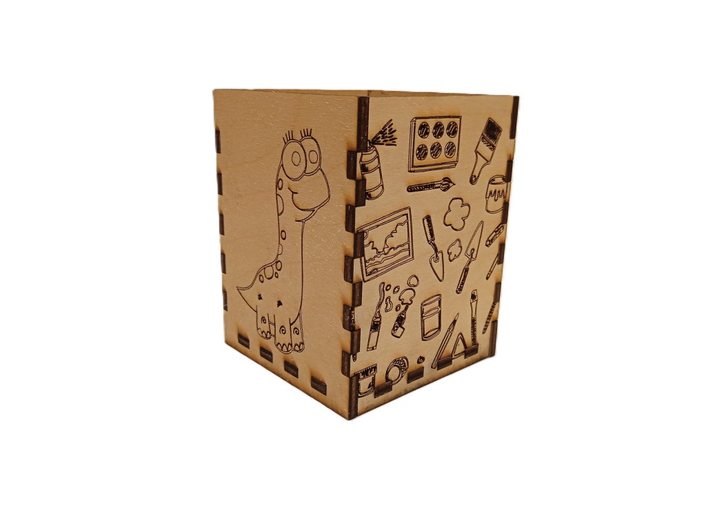 Originální dřevěný tužkovník vyrobený z kvalitní březové překližky o síle 3 mm. Ideální na pastelky, fixy nebo psací potřeby. Rozměry 7×7×9 cm zaručují dostatek prostoru, aniž by zabíral mnoho místa na stole.