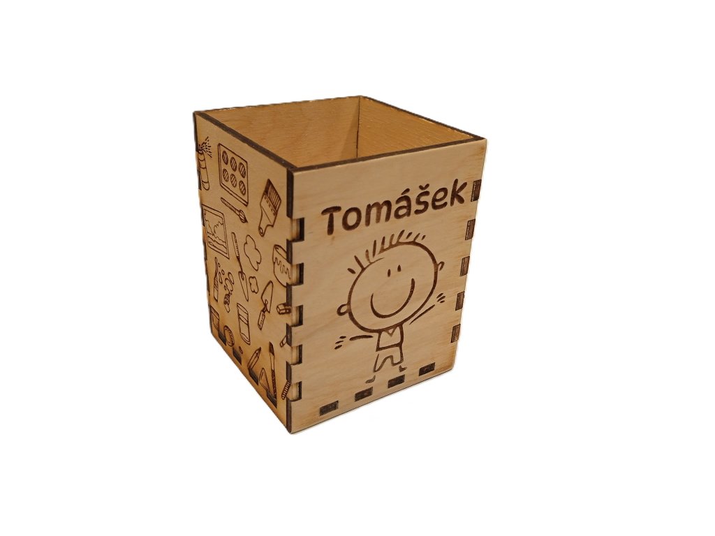 Originální dřevěný tužkovník vyrobený z kvalitní březové překližky o síle 3 mm. Ideální na pastelky, fixy nebo psací potřeby. Rozměry 7×7×9 cm zaručují dostatek prostoru, aniž by zabíral mnoho místa na stole.