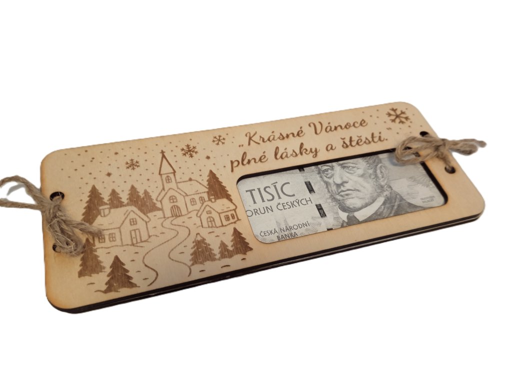 Poznámka: Peníze nejsou součástí balení – posíláme pouze dřevěnou obálku. 😊
