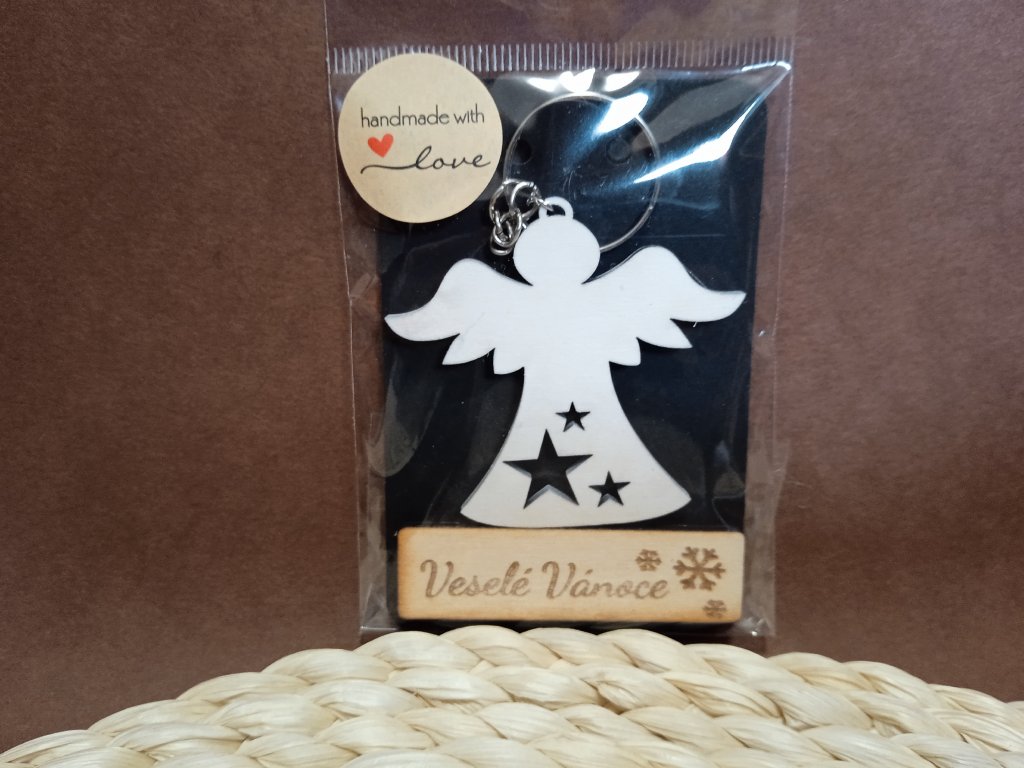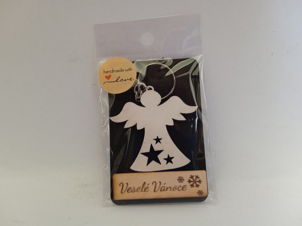 Vánoční dřevěný přívěšek - anděl - hvězdy