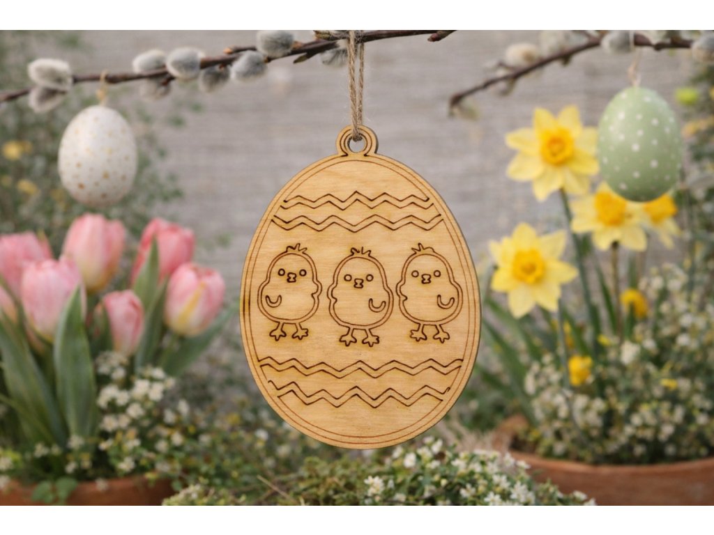 Velikonoční dřevěná vajíčka na pověšení - kuřátka