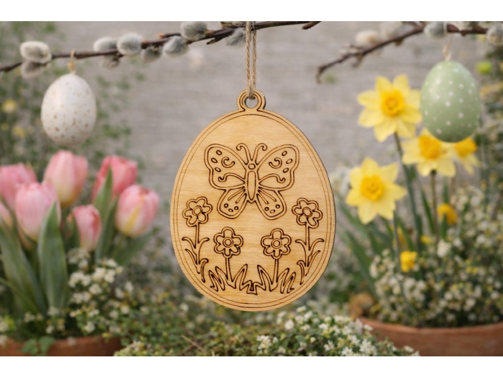 Velikonoční dřevěná vajíčka na pověšení - motýlek