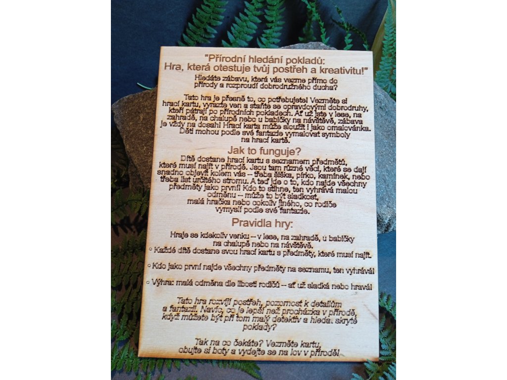 Každé dítě dostane herní kartu, na které má za úkol najít různé předměty v přírodě.