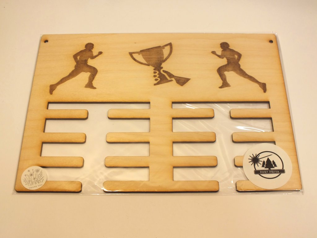 Věšák na medaile – s vlastním jménem, citátem a sportovním motivem
