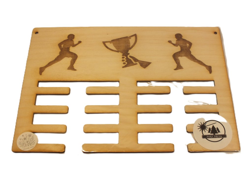 Věšák na medaile – s vlastním jménem, citátem a sportovním motivem