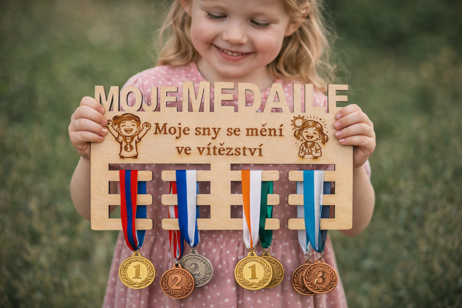 Věšák na medaile ze dřeva - personalizace